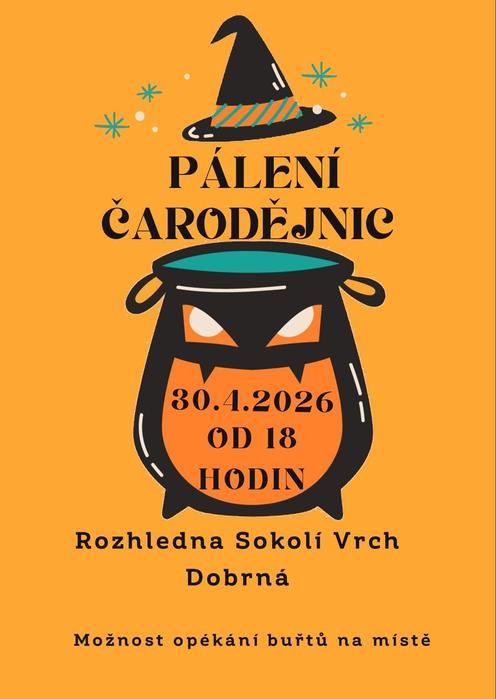 Vážení spoluobčané, zveme vás na tradiční pálení čarodějnic u rozhledny Sokolí vrch.