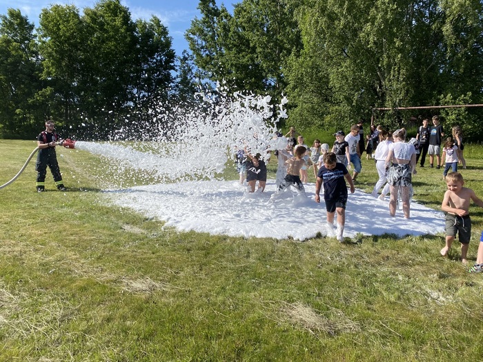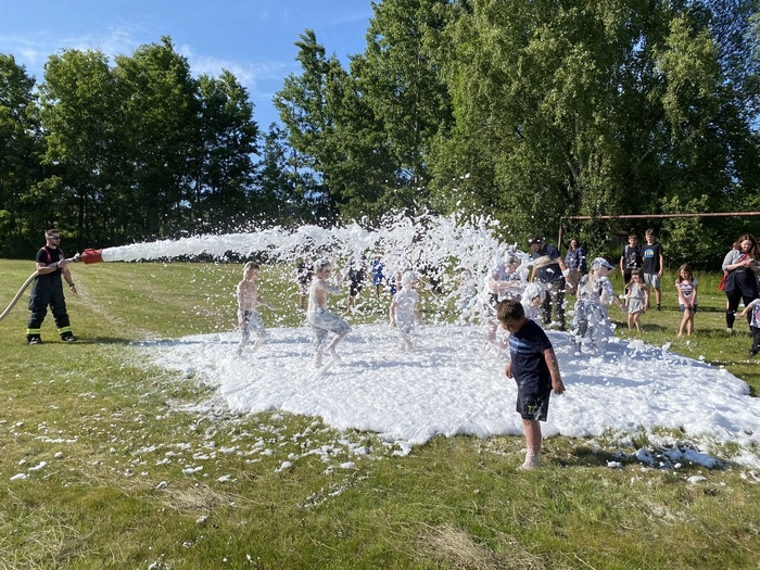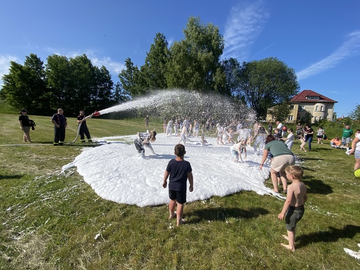 Dne 3.6.2023 jsme přivítali děti s jejich doprovodem na zahradě mateřské školy Dobrná. Pro děti bylo připraveno 16 úkolů, u kterých jim pomáhali naši přátelé a odměňovali je sladkostmi a obrázky na jejich kartičky, za které poté obdržely zajímavé a krásné ceny. Přálo nám počasí a proto bylo pro děti i snesitelné se po těchto úkolech skočit do pěny, kterou nám připravili dobrovolní hasiči. Svezli děti také v terénní čtyřkolce a předvedli zásahovou techniku. Děkujeme jim tímto za jejich nasazení a příjemné odpoledne!