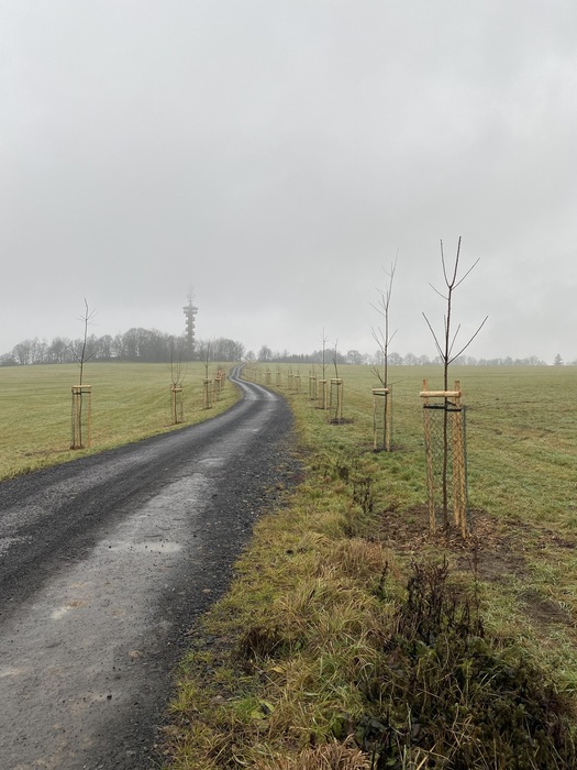 Vysazeno bylo tedy 84 stromů po obou stranách komunikace včetně ochrany proti okosu zvěří a následné péče po dobu tří let ze strany dodavatele.